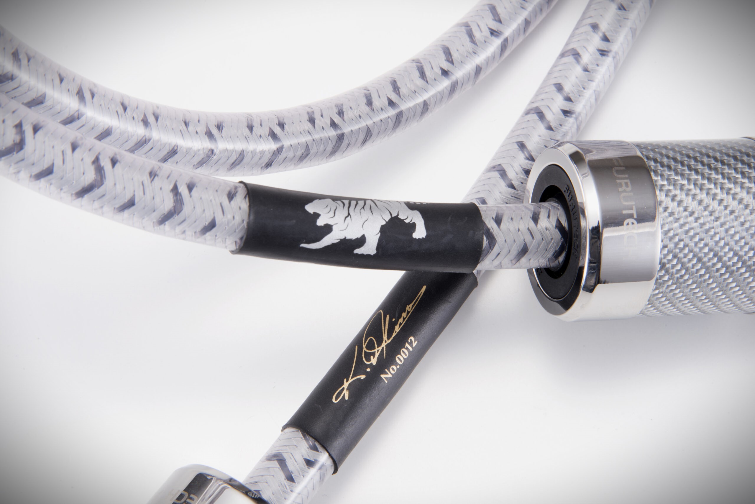 À cela s’ajoute une couche de D-REN puis un écran en film infusé de magnésium, un autre en D- et un écran que le fabricant appelle « écran photonique ». À l’extérieur, on trouve un blindage transparent à quatre couches, sous lequel on distingue des fils argentés et noirs qui imitent joliment les marbrures de la peau d’un tigre blanc. Ce câble est donc mécaniquement complexe, mais néanmoins très flexible.
